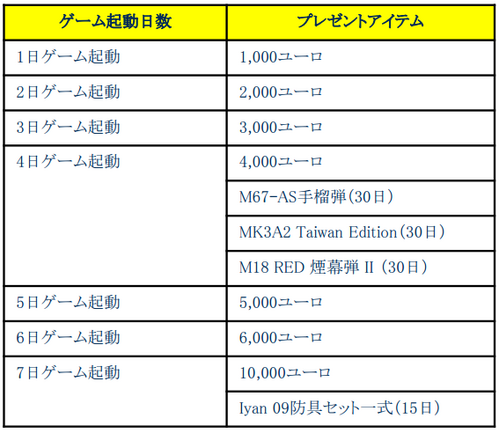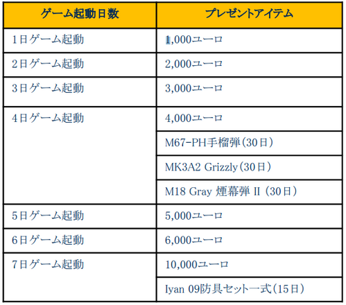 (※プレゼントアイテムの「ユーロ」は重複いたしません。アイテムは重複してプレゼントいたします。)
