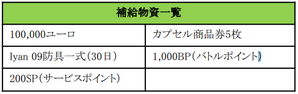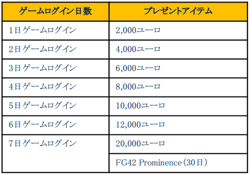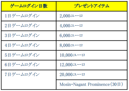■プレゼント内容: (※プレゼントアイテムの「ユーロ」は重複いたしません。アイテムは重複してプレゼントいたします。)